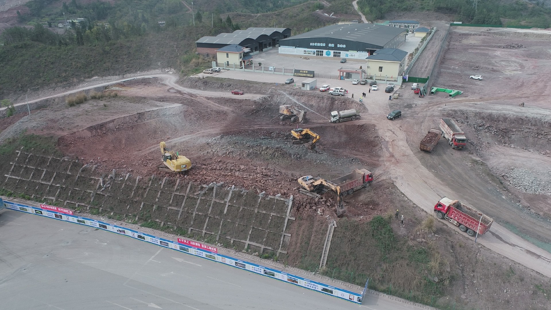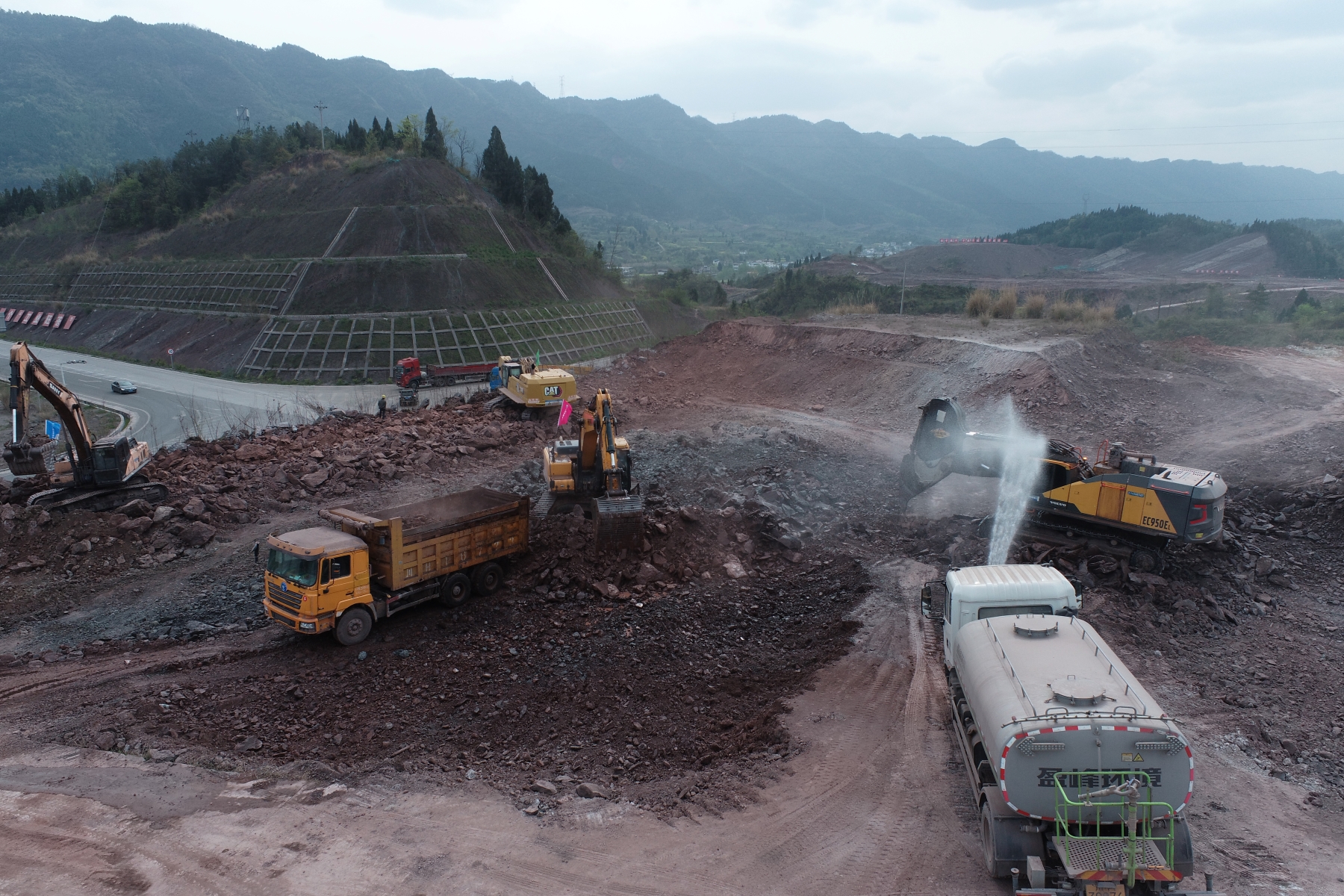 4月4日,正值清明假期,G542線旺蒼嘉川化工園區段臨時道路工程施工現場仍一片繁忙。